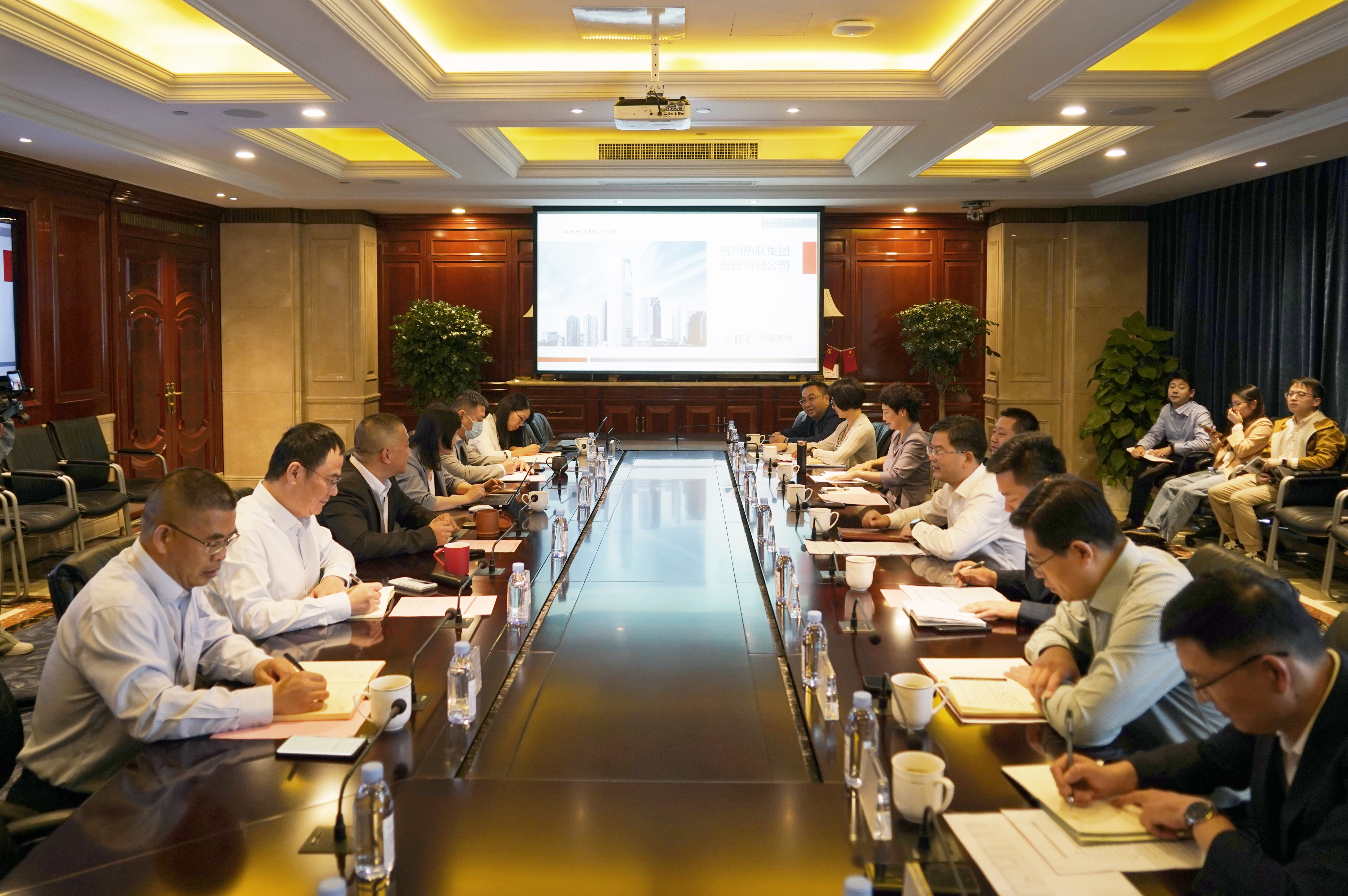 2023年10月9日上午,杭州市拱墅區(qū)委書記李志龍、副區(qū)長(zhǎng)沈建立一行走訪調(diào)研熱聯(lián)集團(tuán)。熱聯(lián)集團(tuán)總裁呂永洪、高級(jí)副總裁勞洪波、副總裁嚴(yán)曉燕、副總裁姜莉菁出席并接待。